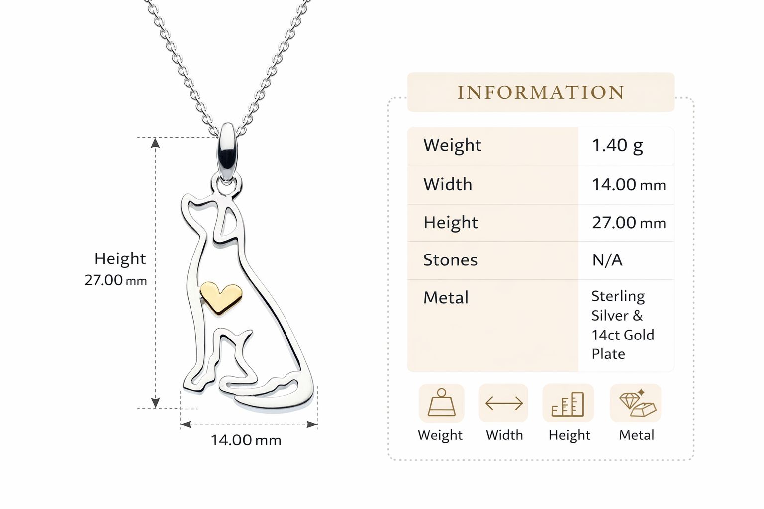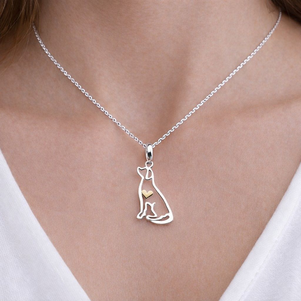 Sterling Silver Dog Necklace with 14ct Gold Plate Heart – Personalised Pet Gift