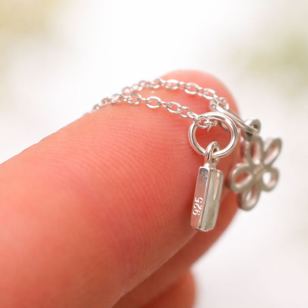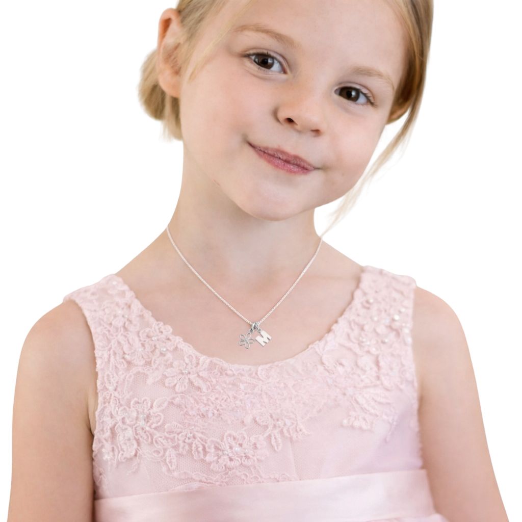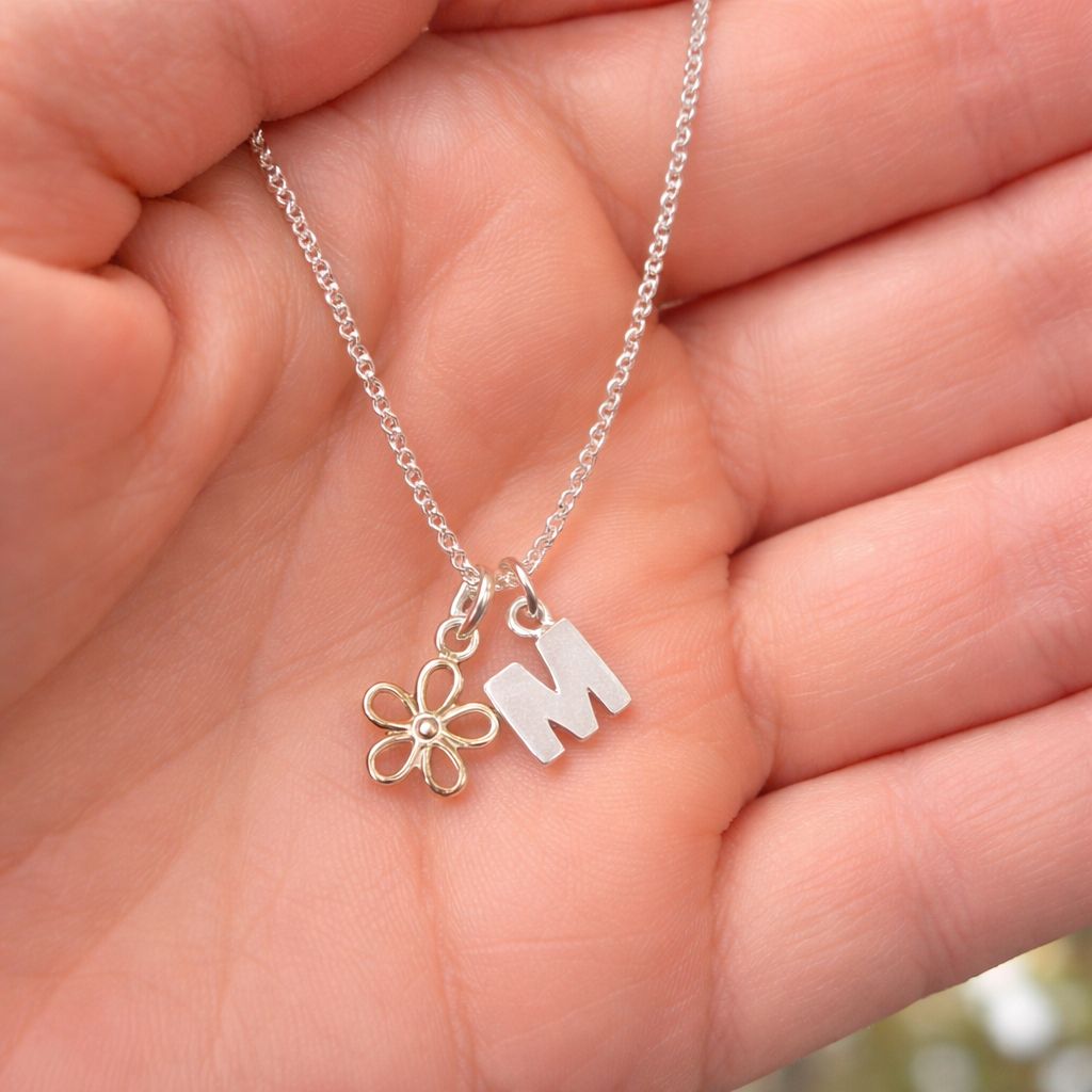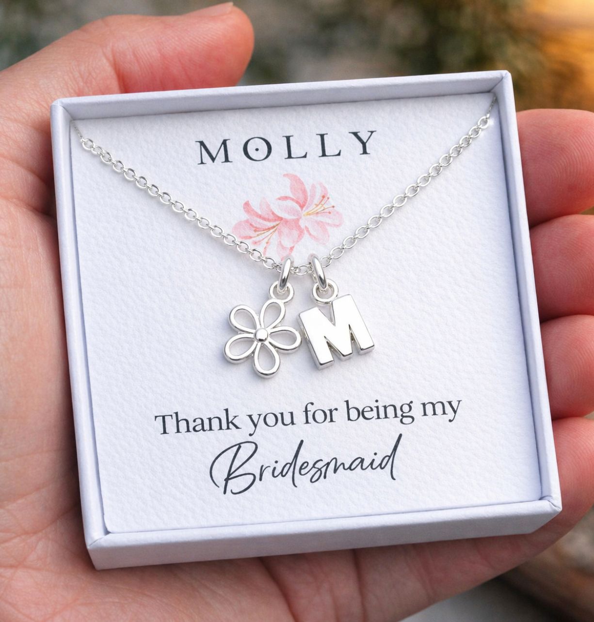 Celebrate your special day with a meaningful and personalised gift your bridal party will treasure forever. This elegant sterling silver bridesmaid and flower girl necklace features a delicate initial charm paired with a pretty flower charm—creating a timeless keepsake for every age.